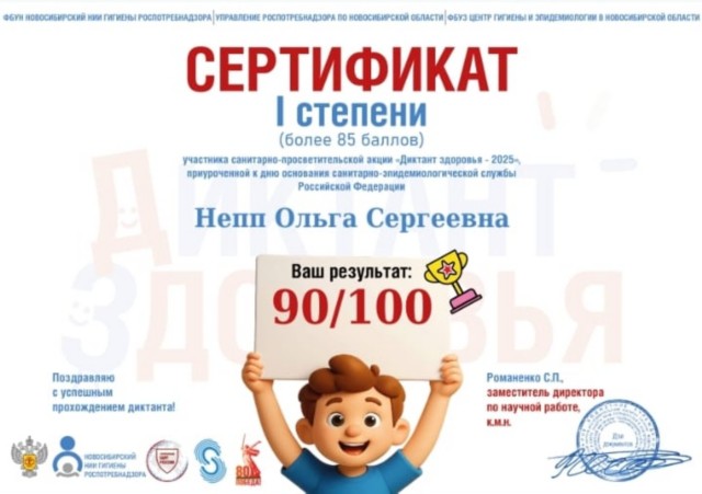 Сертификат за обучение по санитарно-просветительской прогрмме" Основы здорового питания дошкольников"