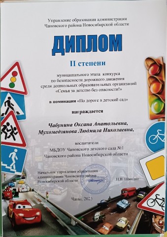 Диплом 2 степени за участие в номинации "Моя семья - за безопасность на дороге" "По дороге в детский сад" |