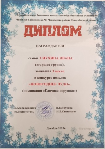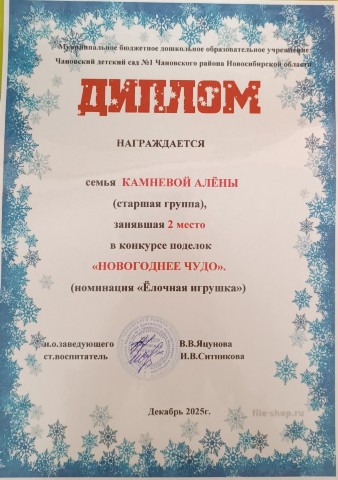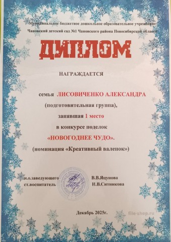Грамота 1 место Ш.Александра в конкурсе-выставке "Осенние фантазии" в номинации "Совушка-сова", 10.2019г |