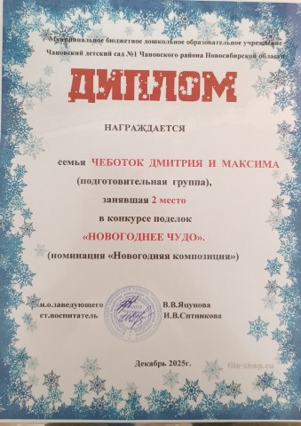 Грамота 2 место В.Максима в конкурсе-выставке "Осенние фантазии" в номинации "Лучшая композиция", 10.2019г |