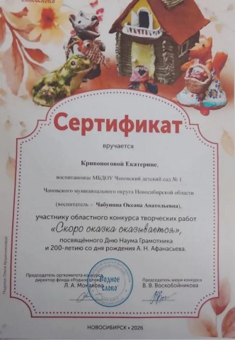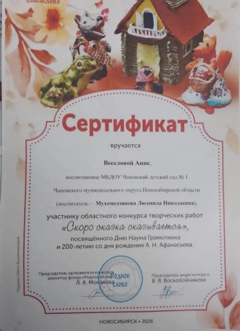 Сертификат участника областного конкурса творческих работ "Мудрая буквица" |