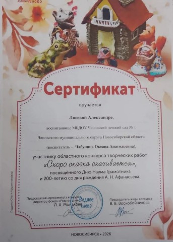 Грамота 1 место в конкурсе-выставке "Осенние фантазии" в номинации "Лучшая аппликация" |