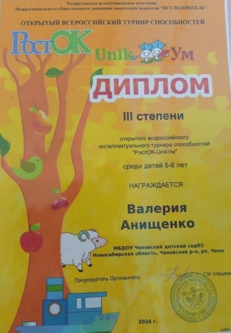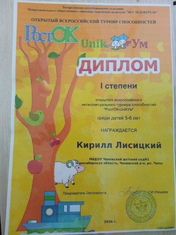 Диплом в открытом всероссийском турнире способностей "РостОК-UnikУм" |