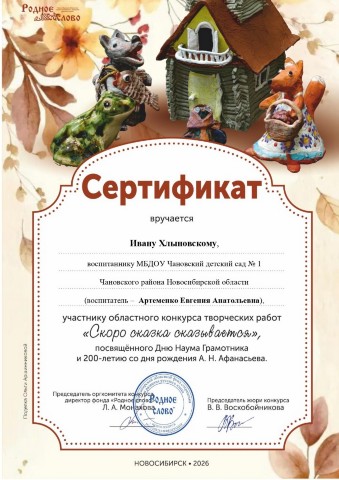 сертификат участника Скоро сказка сказывается |